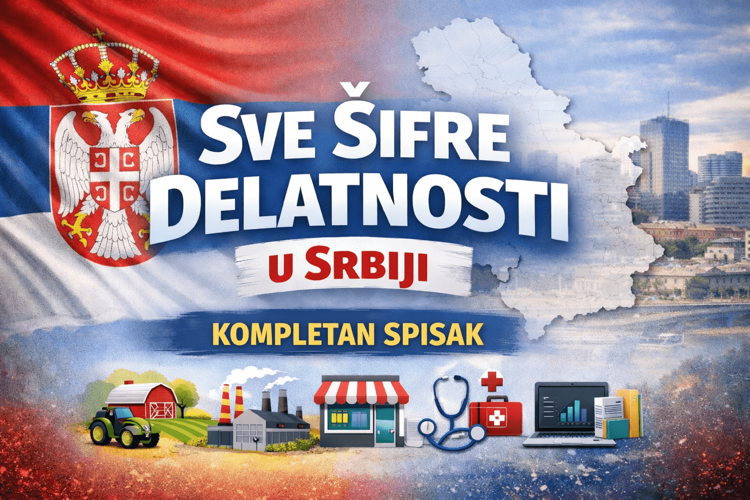 Kompletna tabela svih šifri delatnosti sa nazivima, pripremljena za pretragu i pregled.